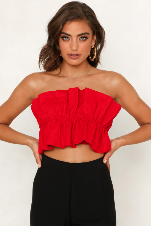 In this fiery look, the singer mixes her top style musts: glitter, cut-outs and a femme mini skirt. She accessorises with paired-back jewellery and strappy heels.